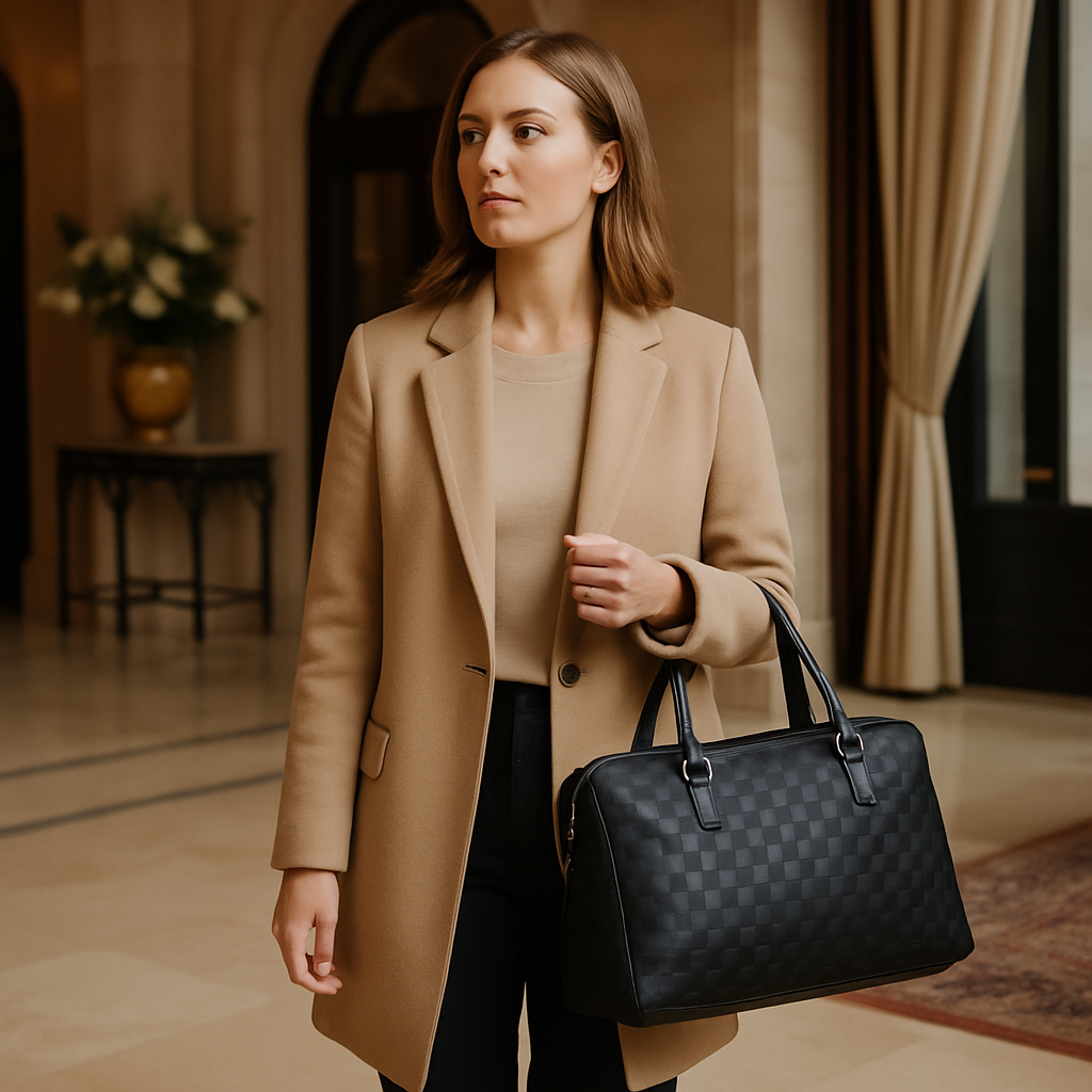 Spacious yet striking, the Fumatore Textured Check Duffel is built for elegance and endurance. With its signature grid emboss and soft leather body, it turns every departure into an arrival.